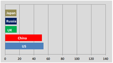 图2 2014年国土安全和公共安全市场全球领先5大国家(十亿美元)