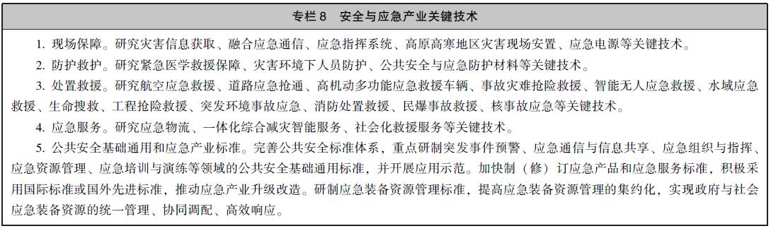 7.发展安全与应急产业关键技术。