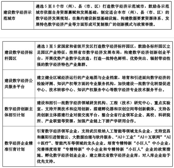 遴选若干城市、园区开展省级数字经济示范标杆建设,支持和引导各区域结合自身特点和优势,聚焦数字经济重点发展领域,加大招商引资、招才引智力度,培育若干数字经济全球知名企业,打造若干全国知名的数字经济领军企业,形成一批数字经济新型研发机构与创新主体,构建产业链创新链深度融合的公共服务体系,以点带面推动数字经济实现整体跃升。